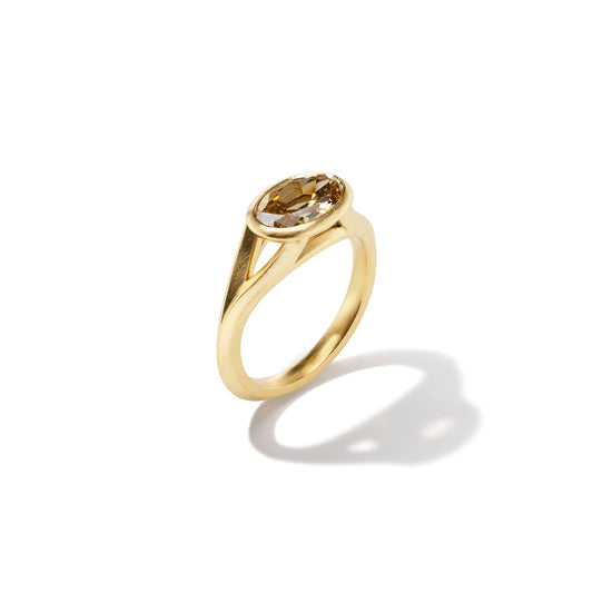 Knife Edge Ring - 1.51 ct. Brown Oval Old Cut Diamond