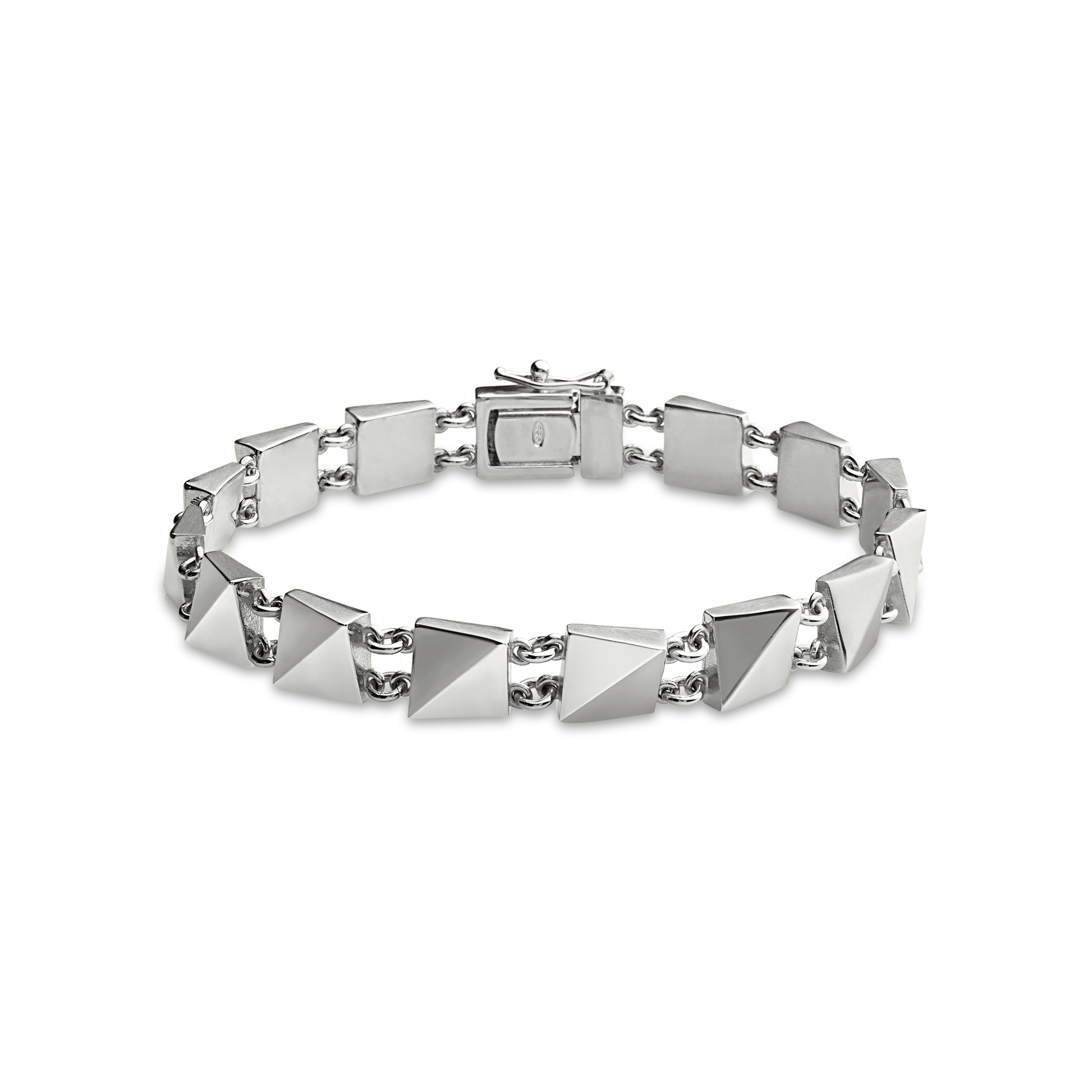 Unisex link bracelet in Sterling Silver with dual texture finish. Available in 18k Gold & Silver colors.