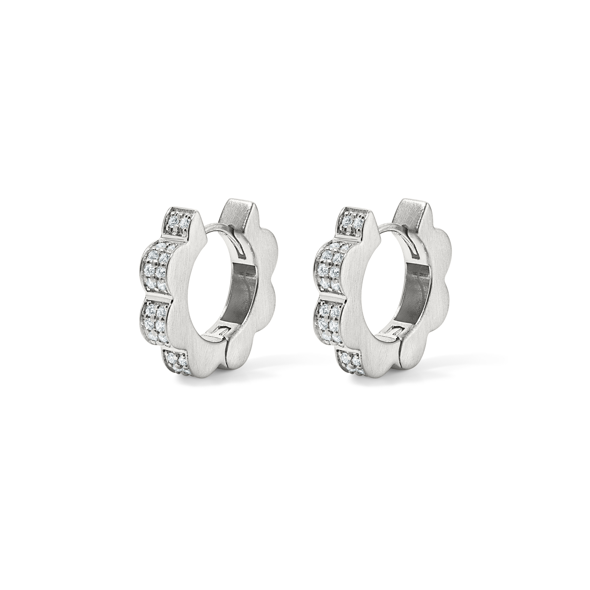 Inspired by jharokha architecture, discover our floral hoops, featuring 0.52cts of Diamonds set in Platinum. Their elegant design brings a refined sparkle to any outfit, making them perfect for both everyday wear and special occasions.