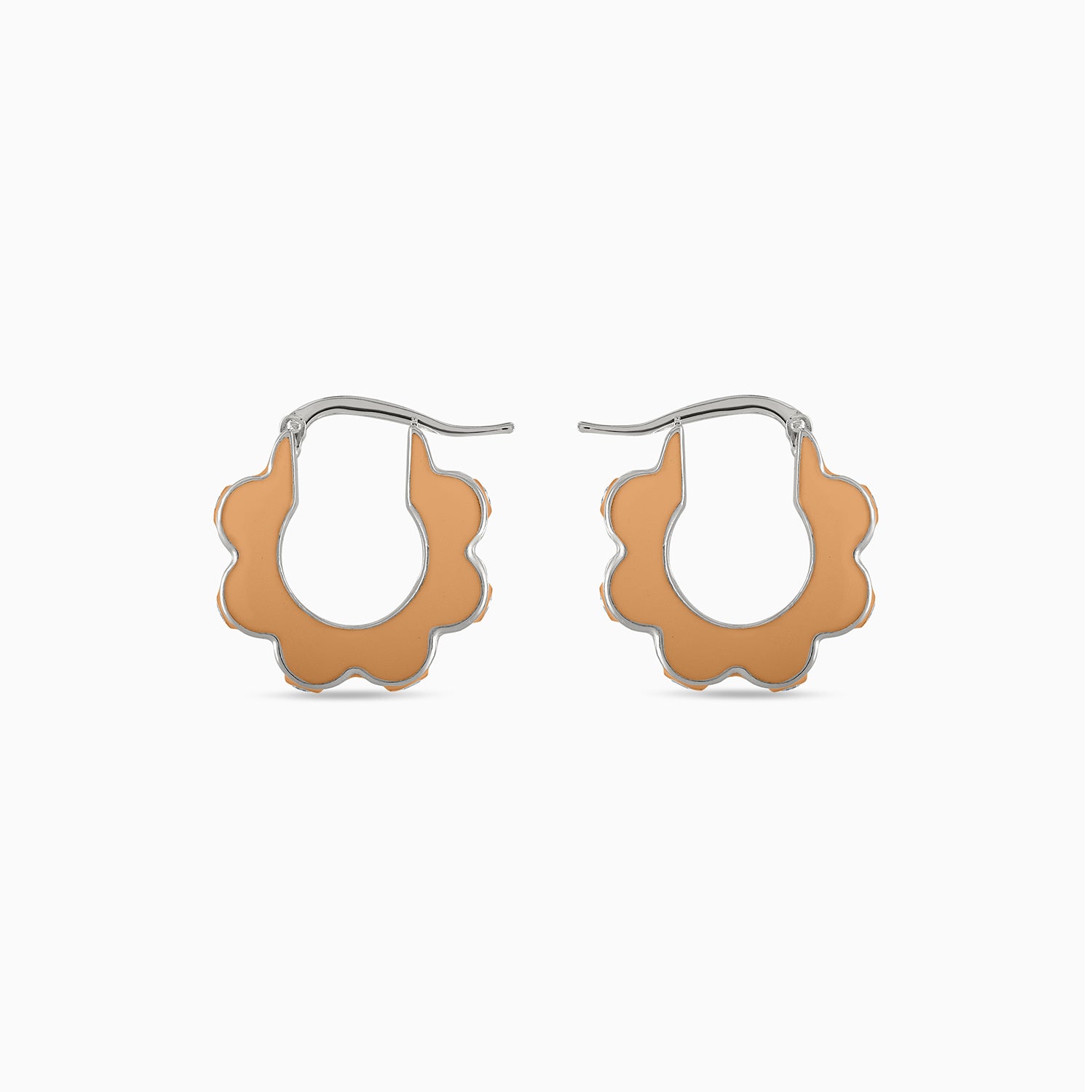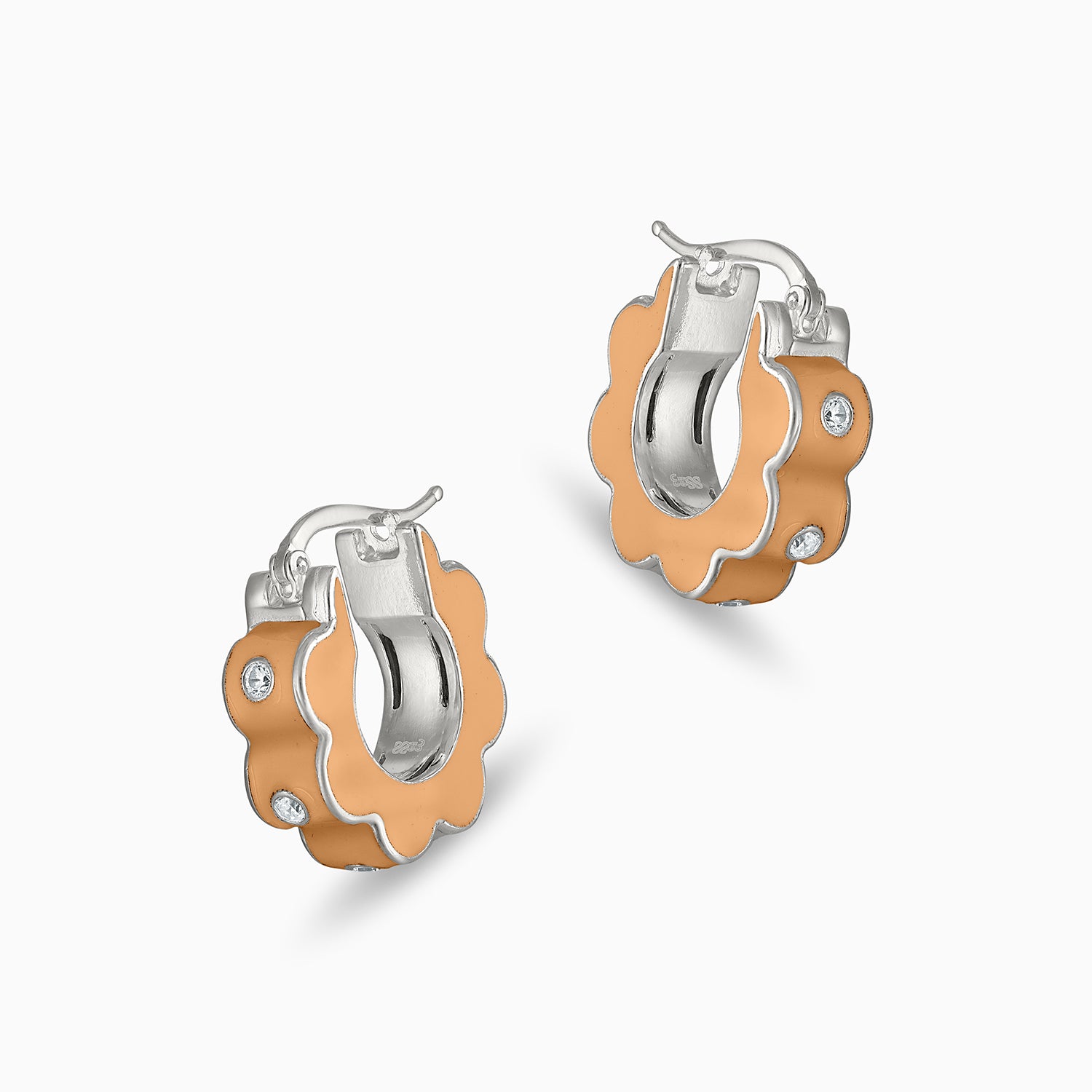 Floral earrings with hand applied enamel in Cotto. 12 diamonds, Brilliant cut (0.72ct.) set in .925 silver.
