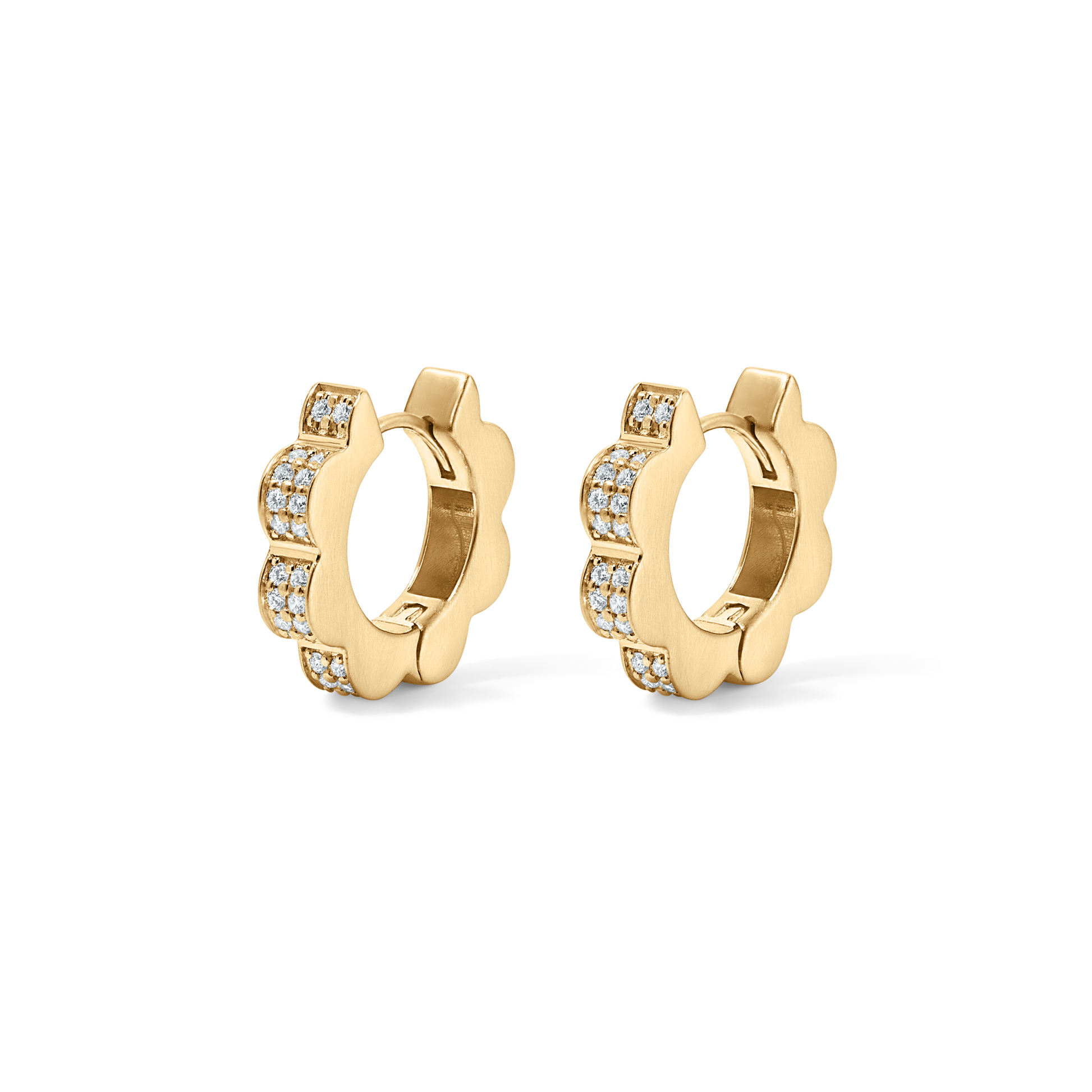 Inspired by jharokha architecture, discover our Jharokha Hoops, featuring 0.52cts of VVS diamonds set in 18k yellow gold. Their elegant design brings a refined sparkle to any outfit, making them perfect for both everyday wear and special occasions.