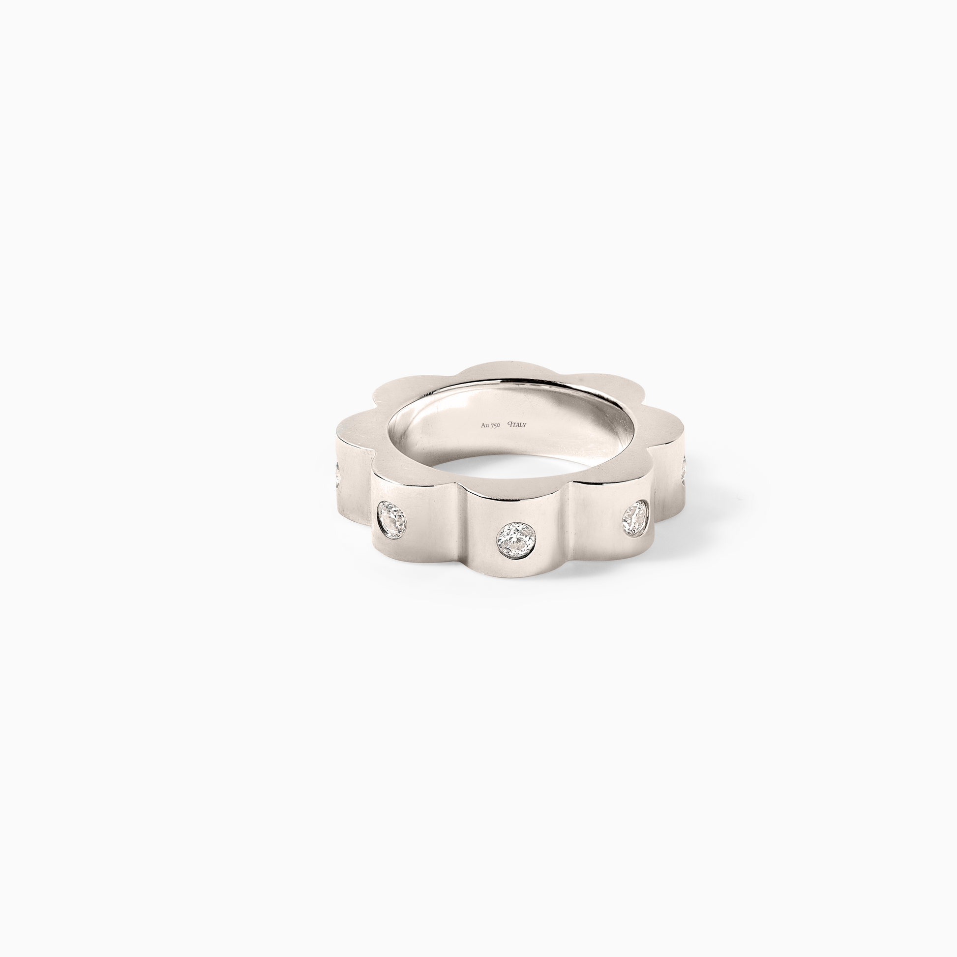 Floral ring handmade in 18k gold, set with 8 Diamonds totaling .48 carats. Weighs approx 13 grams.