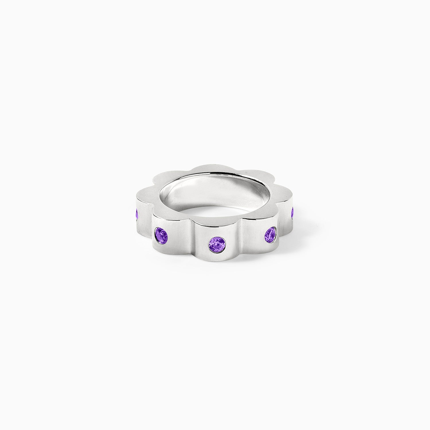 Floral ring from our SS24 release - re-launching our bestselling garden rings in an all metal motif featuring Amethyst.